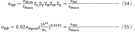 根據GB/T3480(或ISO6336-5),σHlim是在循環次數NL=5×107時得出的,高速齒輪的循環次數可能超過這個值.當NL≤5×107時,可按式(54)計算σHP;當NL>5×107時,在給出合适的條件(材料、制造)和有使用經驗時,仍可按式(54)計算σHP,滞則,由式(55)計算σHP
