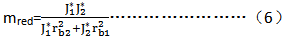 式中:mred——齒輪副的誘導質量,即每個齒傳輸線單位齒寬質量的誘導質量,與其基圓半徑或齧合線有關;