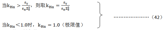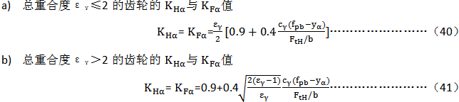 齒間載荷分配系數是考慮幾對同時齧合的輪齒之間的載荷分配不均勻的影響 。其值按下述方法確定7):(7)式(40和式(41)基於這樣假定,即符合規定的齒輪精度的基節偏差,且是沿小輪和大輪的圓周正常分布 。當輪齒具有某種故意的偏差時,它們是不适用於的。)