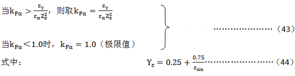 根據式(42)和式(43)的限制值,假定載荷最不利的分布爲整個切向載荷僅用一對齧合輪齒(chǐ)傳(chuán)遞。