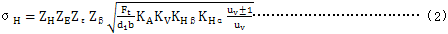 5.1.2錐齒輪齒面接觸應力σH按式(2)計算 :