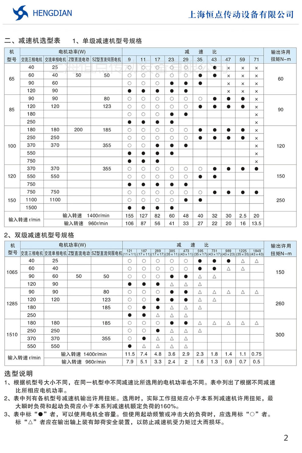 1 - WB擺線減速機的型号表示方法 2 - WB微型擺(bǎi)線減速機(jī)的選型表