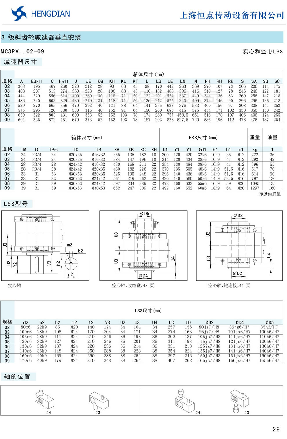 MC硬齒面減速器 詳細選型參數及尺寸參數: